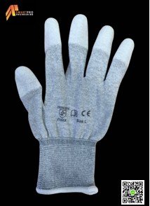 ถุงมือป้องกันไฟฟ้าสถิตแบบเคลือบปลายนิ้ว คือ ถุงมือที่ทำจากเส้นใยคาร์บอนผสมไนลอน เคลือบด้วยโพลียูรีเทน (PU) เฉพาะบริเวณปลายนิ้ว เพื่อป้องกันไฟฟ้าสถิต (ESD) จากผู้สวมใส่ ซึ่งอาจสร้างความเสียหายให้กับชิ้นส่วนอิเล็กทรอนิกส์ได้ ออกแบบมาให้สวมใส่กระชับมือ สามารถหยิบจับชิ้นงานได้ง่าย ไม่ลื่น